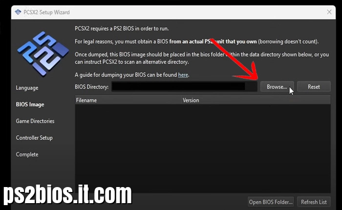You’ll then need to add your PS2 BIOS file. If you haven’t downloaded it yet, click on the Download BIOS button on the site and extract it once downloaded.