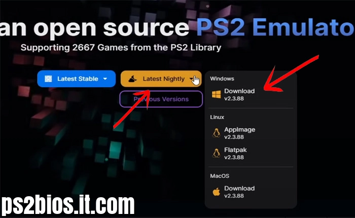 Visit the official PCSX2 Downloads Page and choose your operating system (Windows, Linux, macOS, or Android).